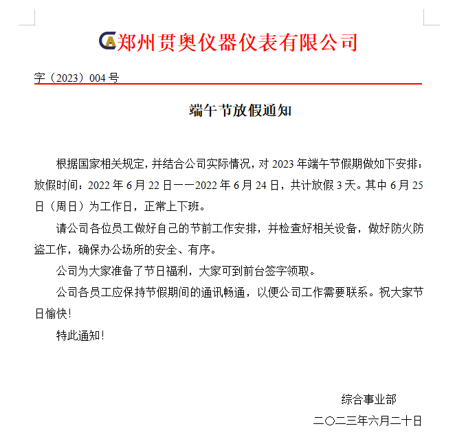 貫奧儀器2023年端午節放假通知